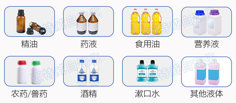如香水、精油、煙油、藥液、酒精、爽膚水、卸妝液等,也可灌裝低腐蝕性或少量泡沫液體,如農藥、營養液、除草劑等。