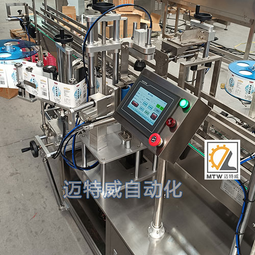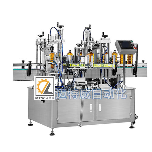 不干膠貼標機可對物體單面或多面貼一張標;該機可單機或連線使用,實現洗瓶、灌裝、旋蓋、貼標、噴碼、裝箱等無人化聯動線一體化生產。