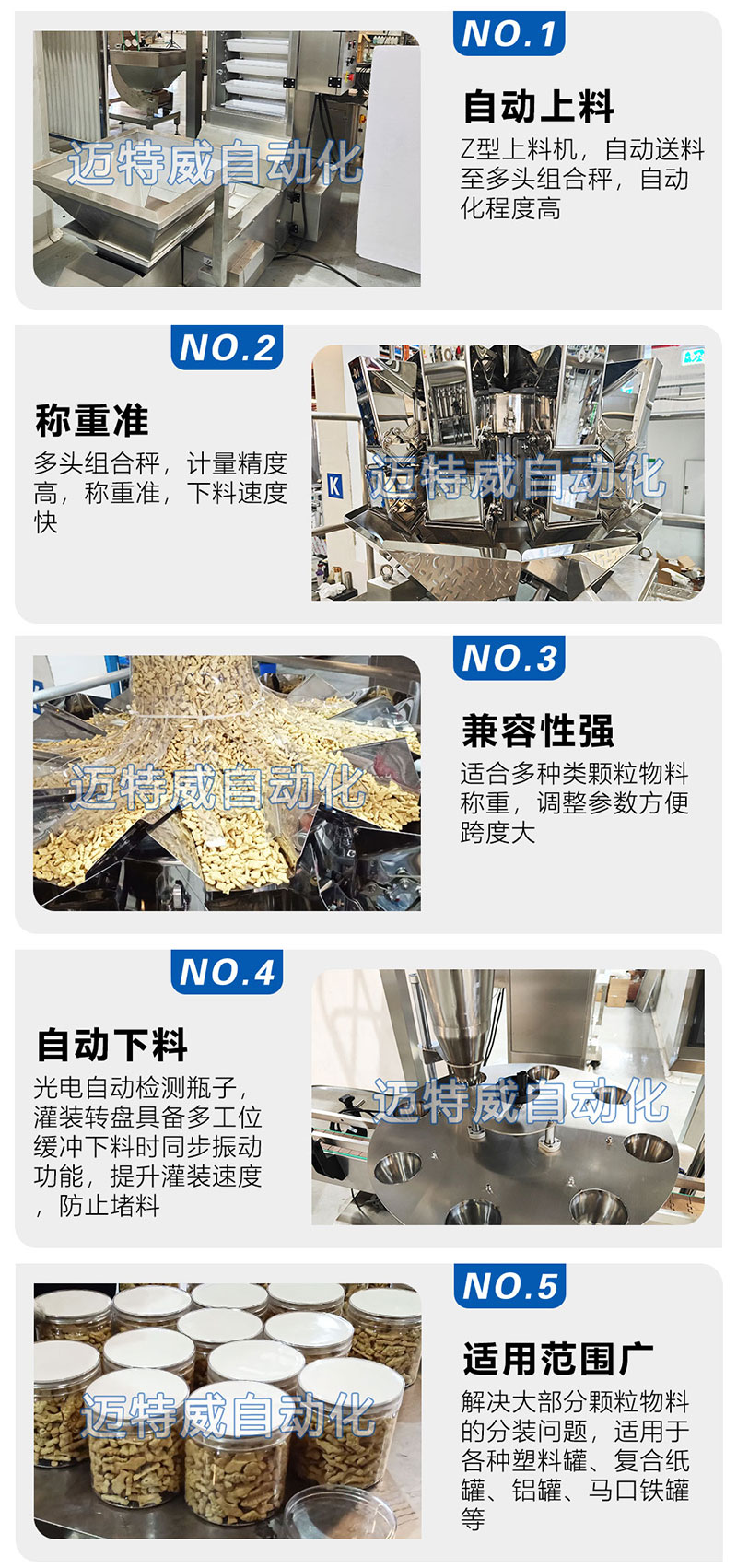 多頭組合秤適用于白糖、鹽、大米、豆類、種子、調味品、洗衣粉、飼料、干燥劑、塑料粒、五金等顆粒狀、粉狀產品的定量稱重,與包裝機配套使用,可進行全自動充填包裝。