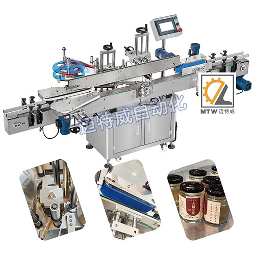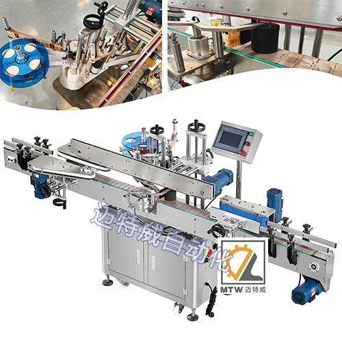 不干膠貼標機可對物體單面或多面貼一張標;該機可單機或連線使用,實現洗瓶、灌裝、旋蓋、貼標、噴碼、裝箱等無人化聯動線一體化生產。