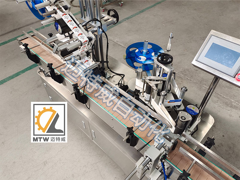 SL-DR全自動圓瓶上平面+側面貼標機為特制機器,共有兩個貼標頭:一個貼標頭在頂部,另一個貼標頭在側面,它可以給瓶子、罐子貼上2張標簽,一張貼在頂部,另一張貼在側面??蓪崿F頂標和側標的定位貼標。