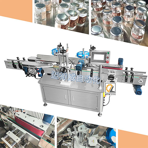 不干膠貼標機可對物體單面或多面貼一張標;該機可單機或連線使用,實現洗瓶、灌裝、旋蓋、貼標、噴碼、裝箱等無人化聯動線一體化生產。