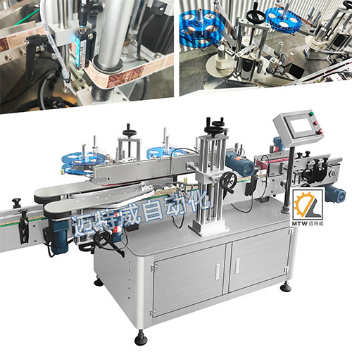 這款單面貼標機針對客戶需求設計,可應用于圓瓶的單面貼標,也可用于六棱瓶一張標貼五個面。