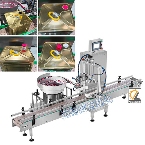 此款壓蓋機適用于機油桶塑料伸縮蓋的壓蓋。使用振動盤將瓶蓋送入瓶口,然后按下瓶蓋,將瓶蓋和瓶子緊緊密封。