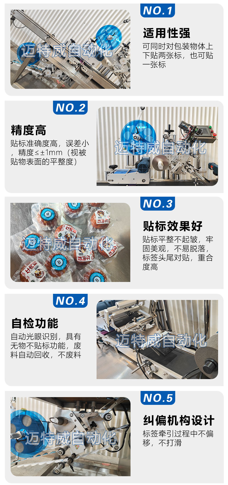 全自動上下雙面貼標(biāo)機(jī)主要應(yīng)用于各種圓形、方形、扁形、片狀等非球面物體和包裝容器表面的上下貼標(biāo)。