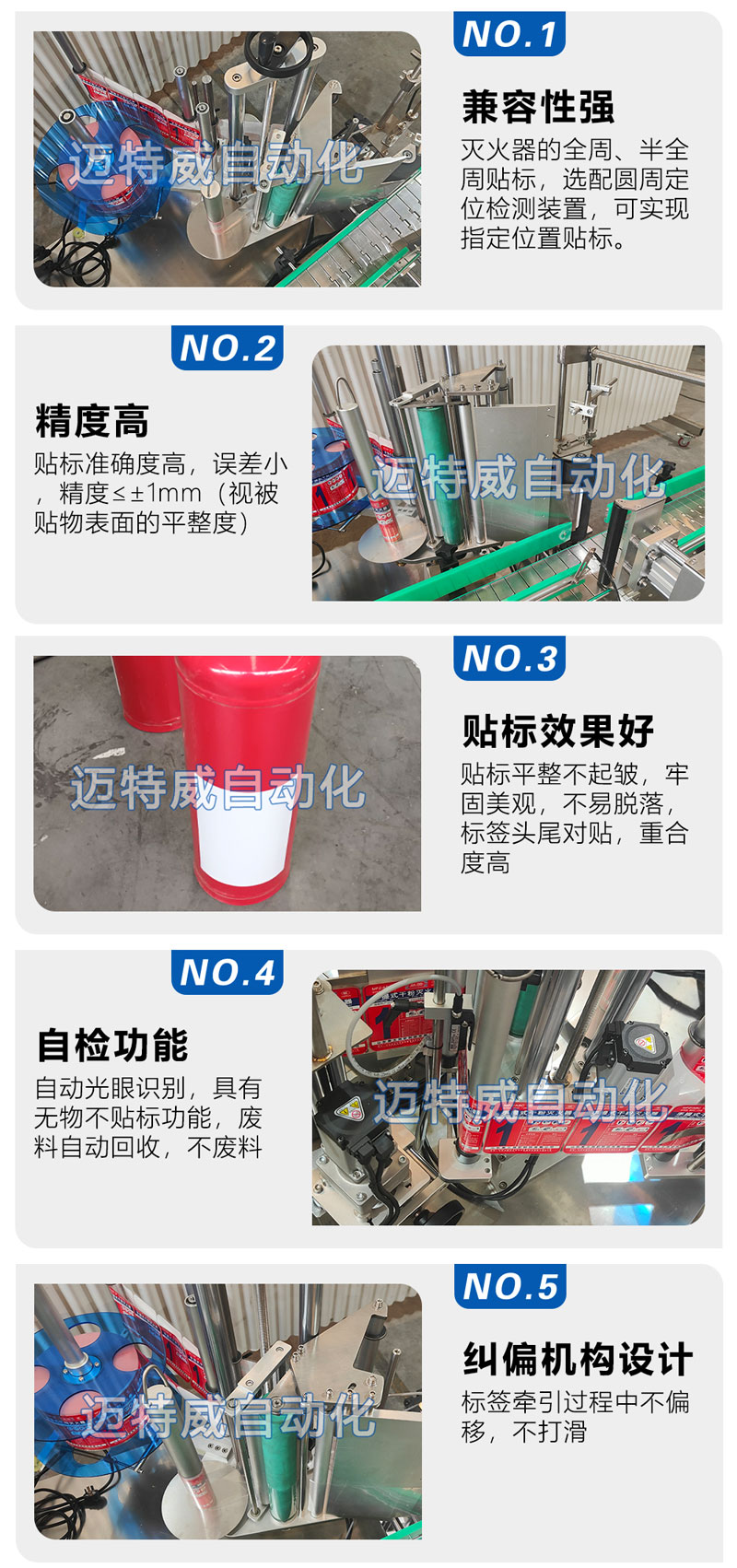 滅火器圓瓶貼標機針對滅火器設計,貼標精度更高,速度更快。