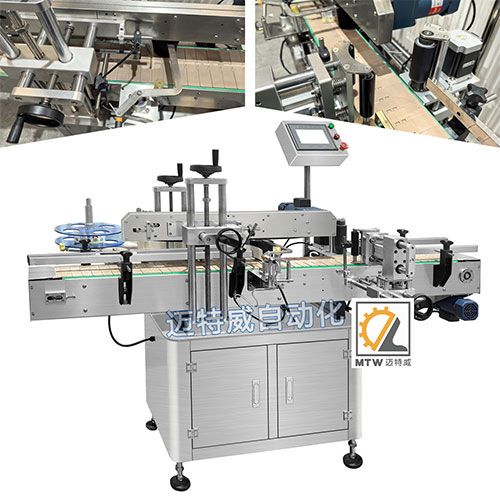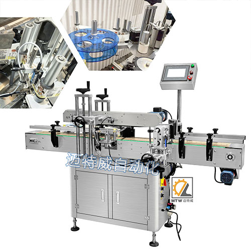 全自動單面貼標機可用于方瓶一張標貼三個面,也可用于圓瓶貼標。