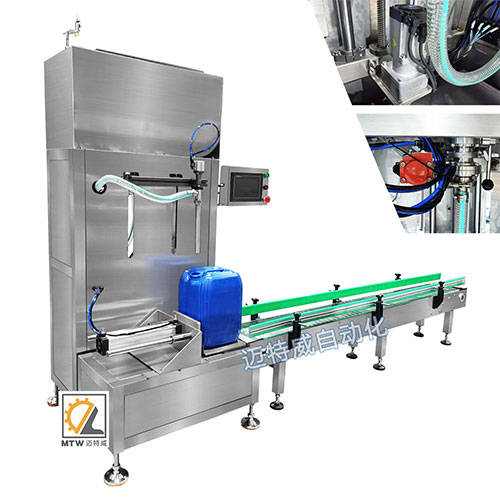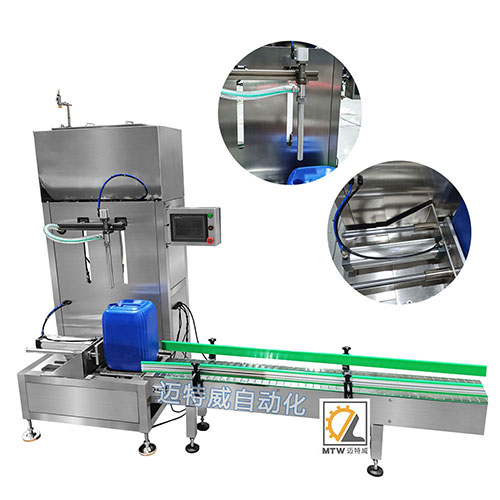 稱重式灌裝機用于塑料桶、鐵桶、紙桶、大口袋等大劑量液體的定量灌裝,如糧油、機油、液肥、車用尿素、涂料、油漆等。