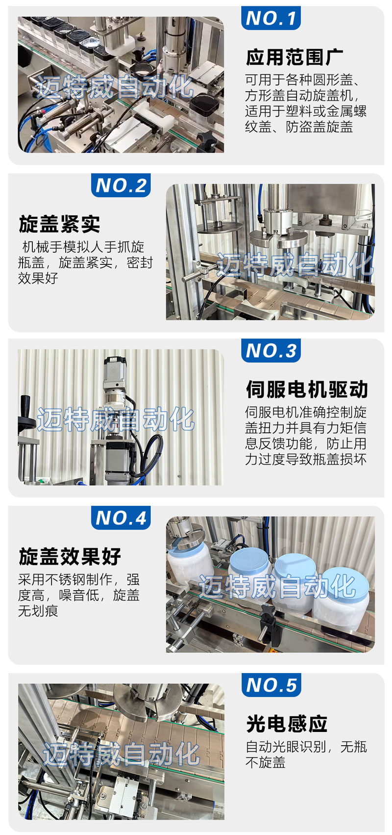 伺服電機準確控制旋蓋扭力并具有力矩信息反饋功能,防止用力過度導致瓶蓋損壞;