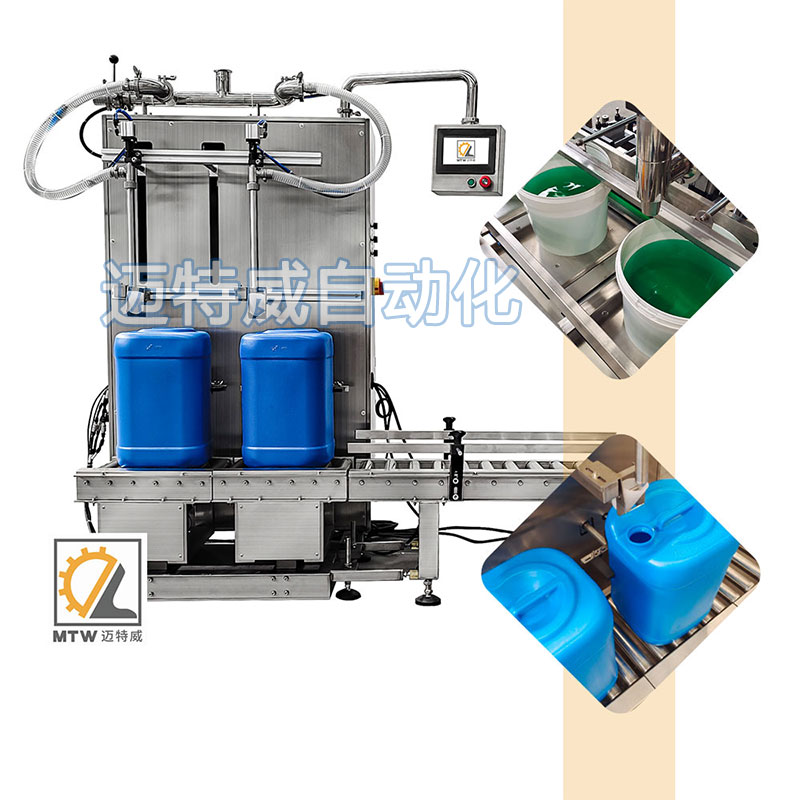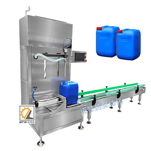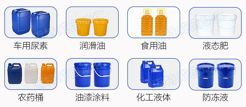 稱重式灌裝機用于塑料桶、鐵桶、紙桶、大口袋等大劑量液體的定量灌裝,如糧油、機油、液肥、車用尿素、涂料、油漆等。
