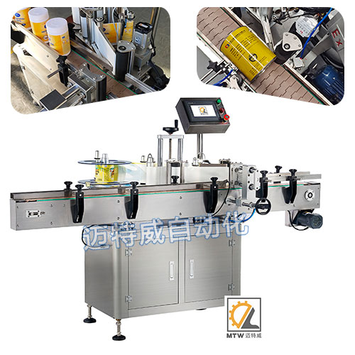 立式氣動圓瓶貼標機適用于油脂、日化、飲料、酒水等行業圓形物體的單側面自動貼標,相對于普通圓瓶貼標機增加一套定位旋轉機構,對于圓瓶貼周標的產品貼標精度更高,速度更快。