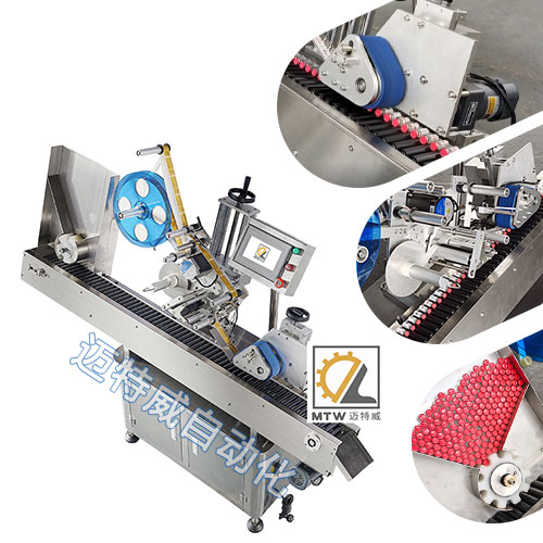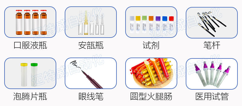 臥式圓瓶貼標機應用于醫藥、日化、食品、文具、電池等行業不易站立圓柱細長物體的自動貼標,如采樣管、試劑、安瓿瓶、西林瓶、采血管、泡騰片瓶、圓形火腿腸、唇膏、筆桿等。還可以根據生產需求在本機上配備自動裝盒機等。