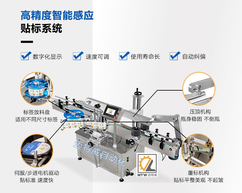 ● 配有自動分瓶、校正和上壓機構,確保被貼物運行平穩,貼標準確美觀;