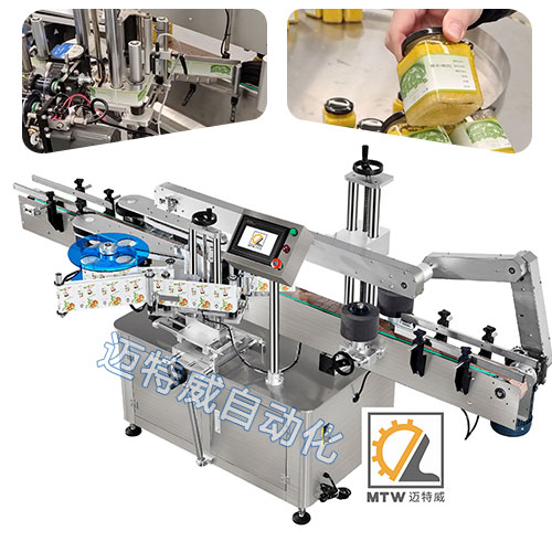 不干膠貼標機可對物體單面或多面貼一張標;該機可單機或連線使用,實現洗瓶、灌裝、旋蓋、貼標、噴碼、裝箱等無人化聯動線一體化生產。